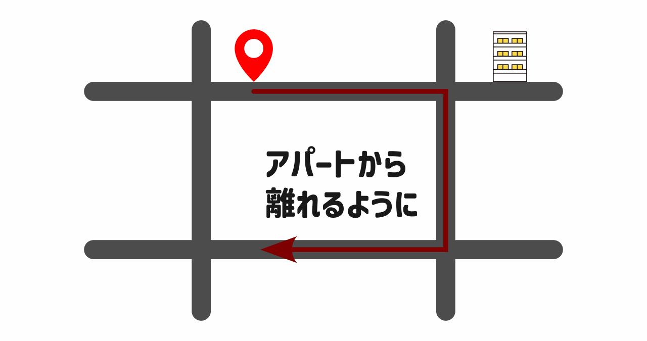 そして、もしつきまとわれているかも?と思ったら、アパートから離れるように同じ方向に2度曲がってみましょう。